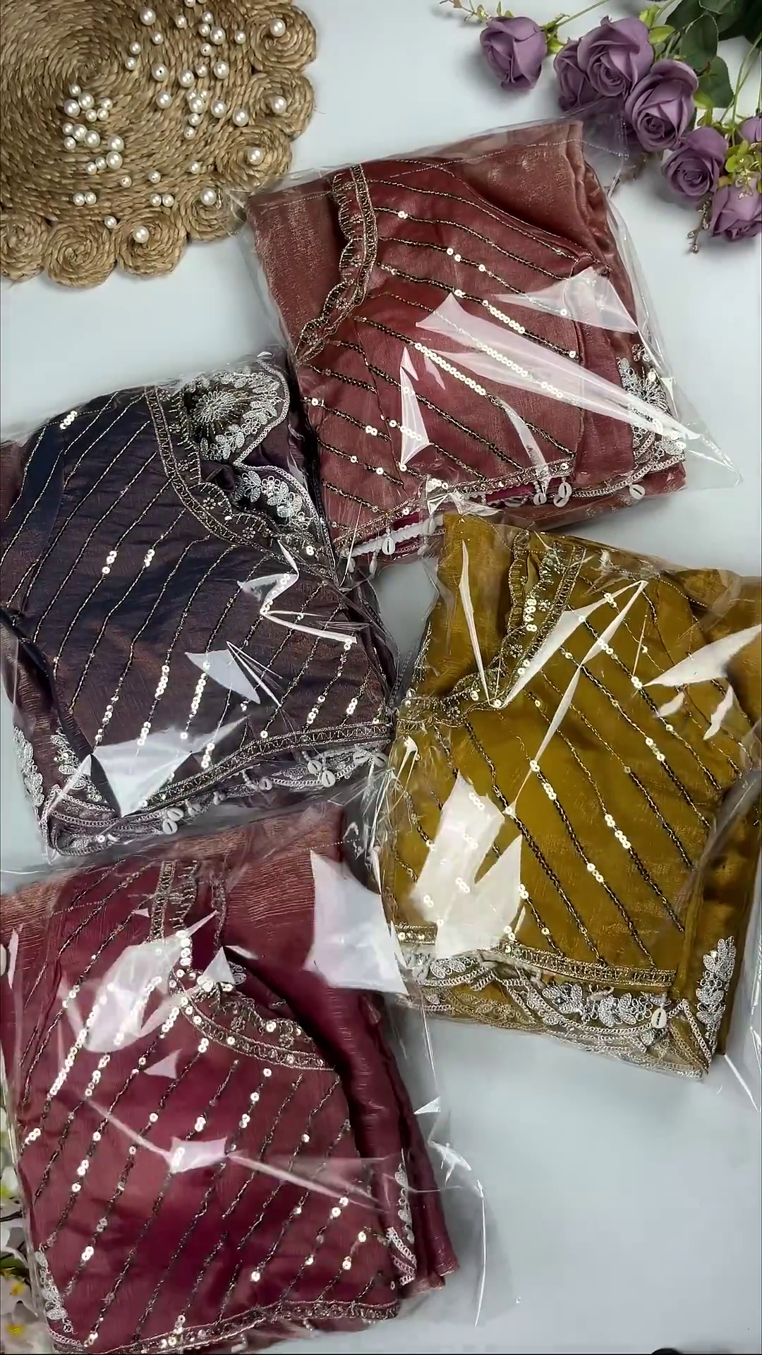 Bring a touch of elegance and royal charm to your festive wardrobe with this stunning green embroidered saree set. Designed with a luxurious shine fabric, this saree features beautifully crafted sequin lines and intricate embroidery that add sparkle and sophistication to your look. The saree comes with a matching designer blouse featuring rich embroidery, sequin detailing, and stylish finishing that enhances its premium appeal.