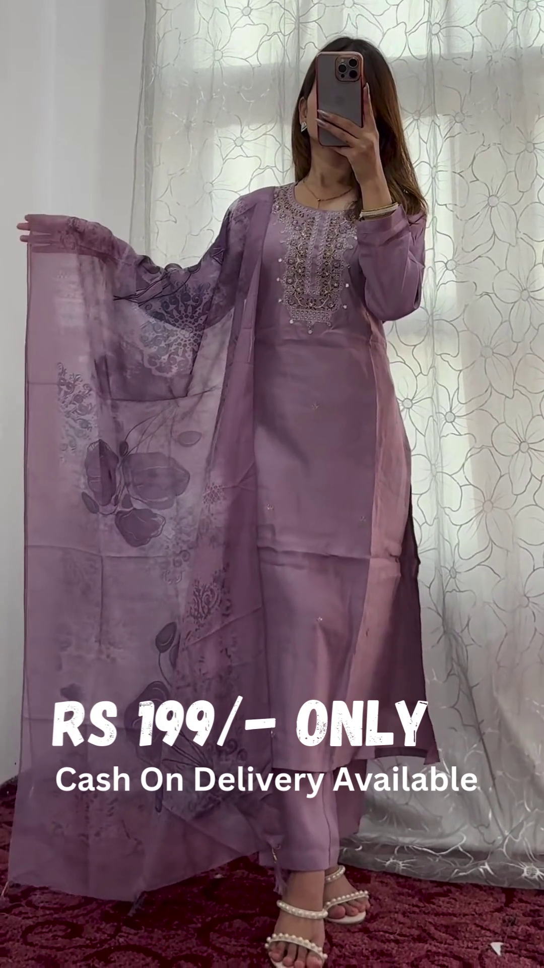 Design & Craftsmanship: This graceful lavender suit is adorned with delicate pearl and mirror embroidery on the neckline, adding an exquisite touch of sophistication. The straight-cut silhouette, paired with finely stitched details, creates an effortlessly chic appeal, making it perfect for both formal and festive occasions.