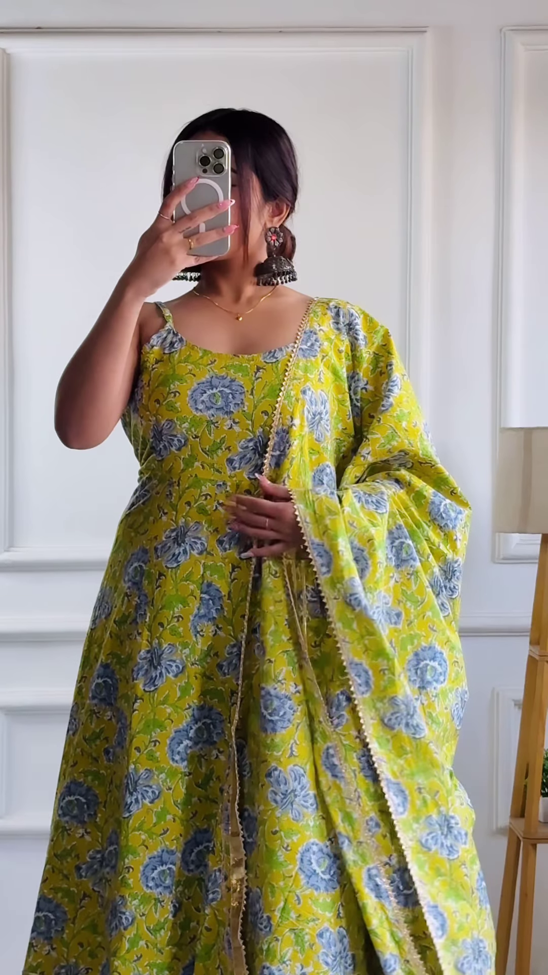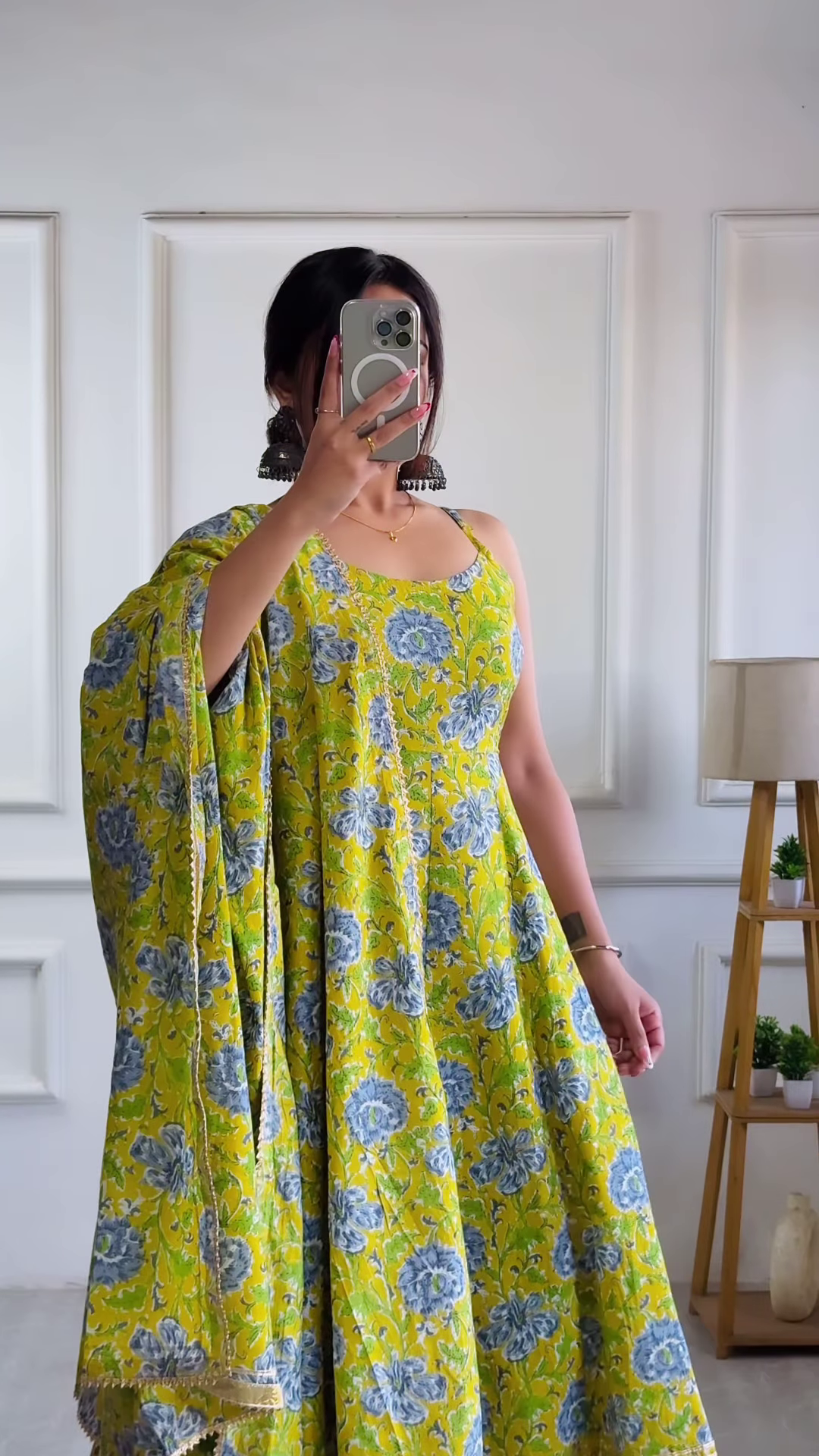 Be the first to review “Lime Green Floral Cotton Anarkali Set with Dupatta”