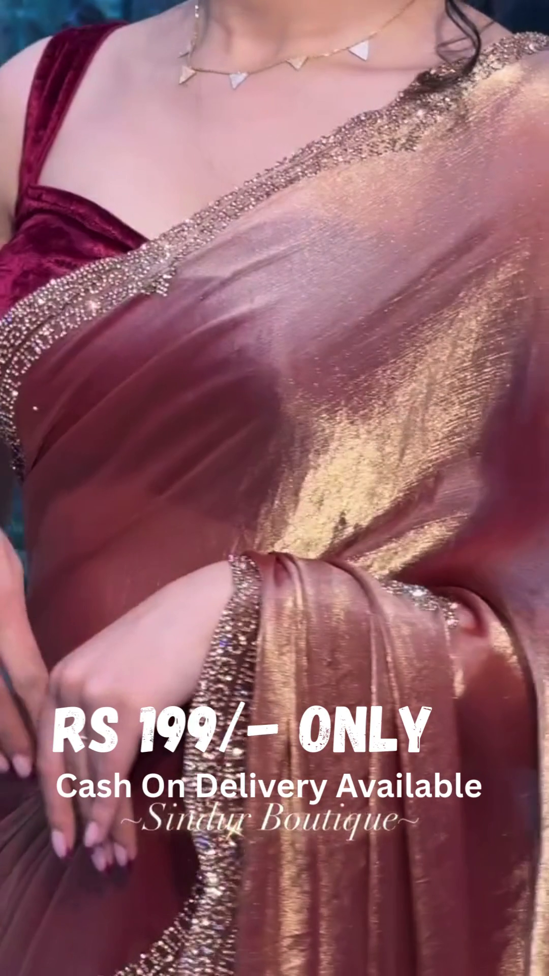 • Design & Craftsmanship: Drape yourself in pure elegance with this rose gold velvet saree, featuring an ultra-luxurious texture and a soft sheen that enhances its regal appeal. The shimmering sequin and beadwork along the intricately designed border add a mesmerizing touch of glamour.