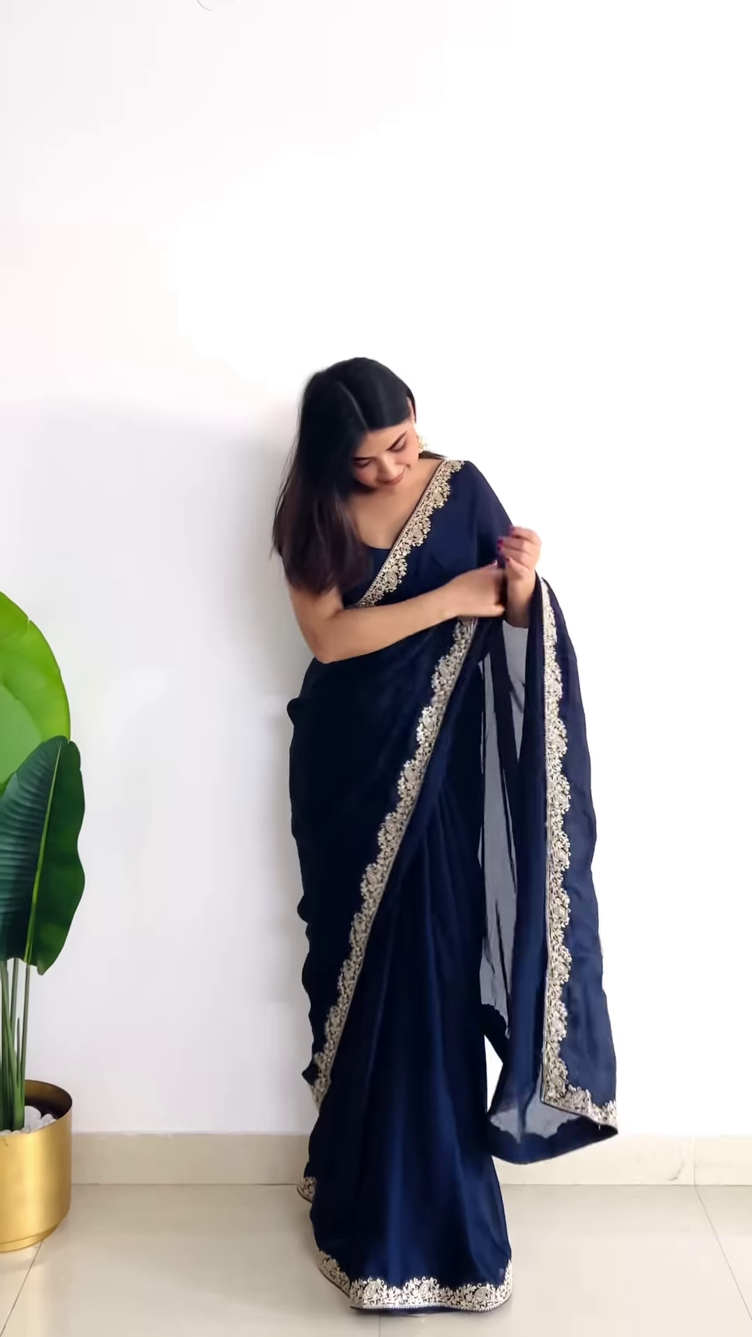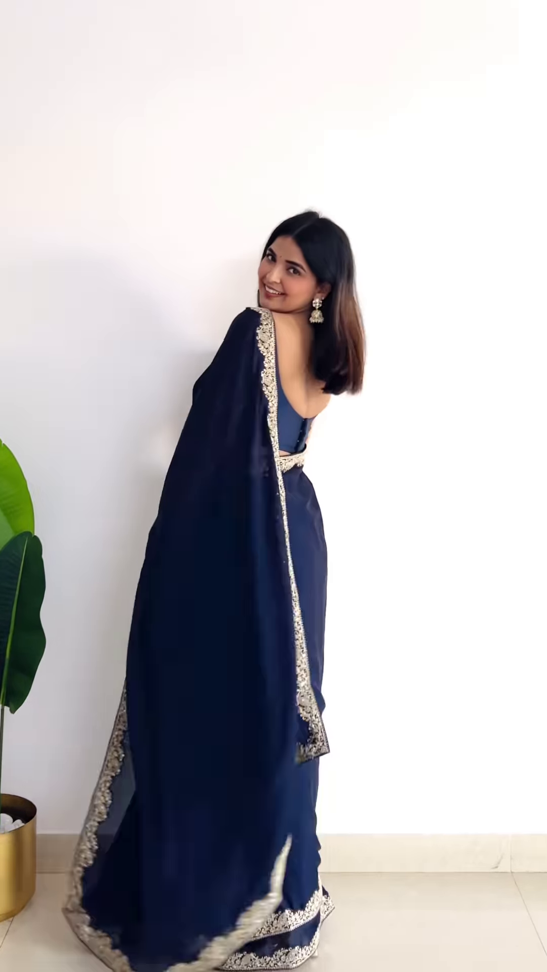 ✨ Make a lasting impression with this midnight blue saree—a perfect fusion of luxury and elegance!
