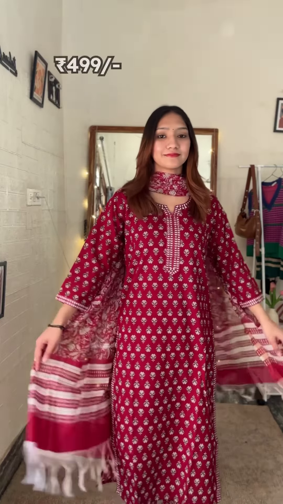 The matching dupatta echoes the kurta’s design with a soft net-like material and coordinated border work, completing the look in perfect harmony. Whether you’re heading to a casual day function, family gathering, or festive celebration, this kurta set strikes the perfect note of understated elegance.
