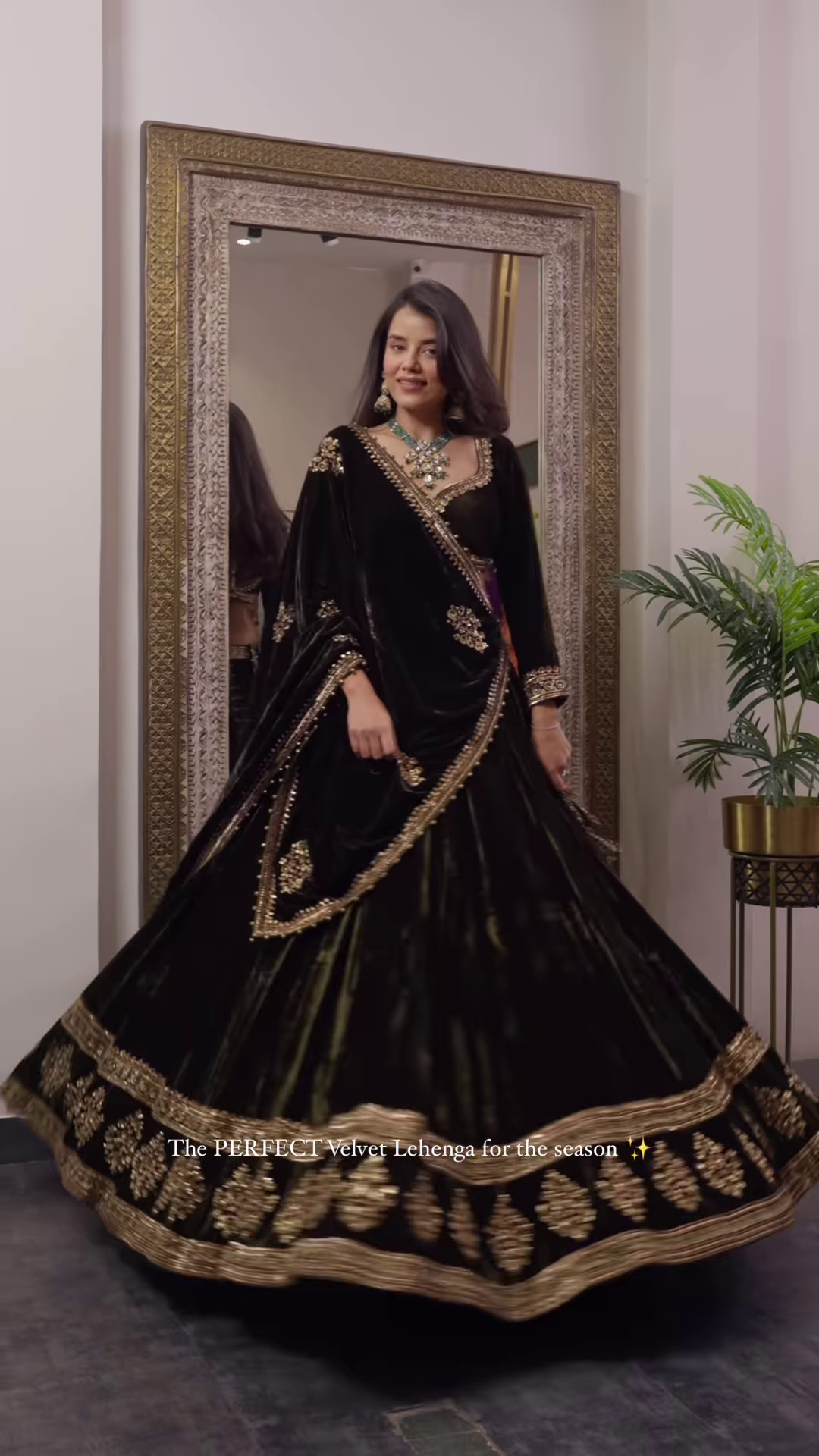Lehenga & Blouse: Premium-quality velvet with a soft, plush texture