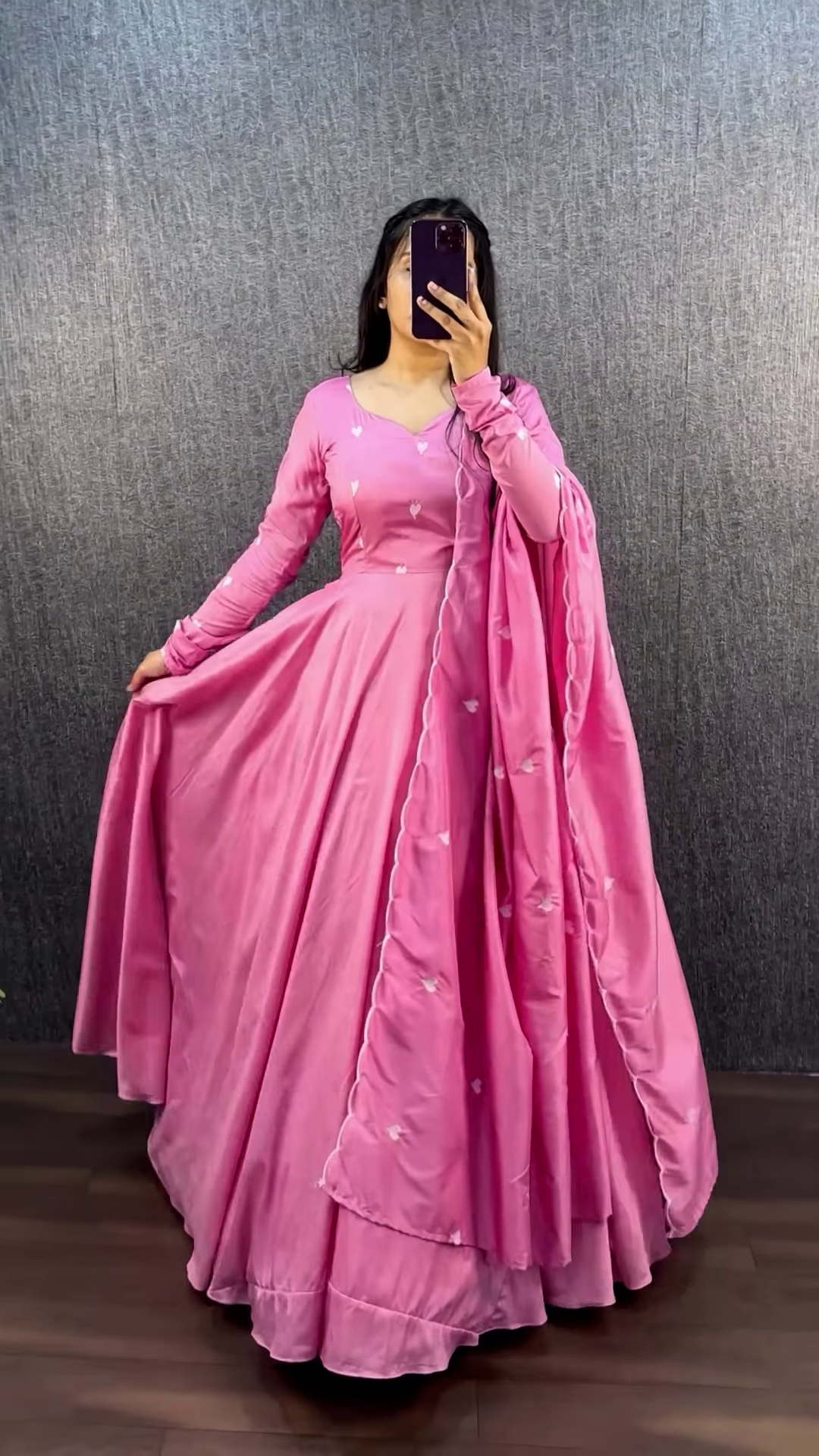 Perfect for weddings, sangeet nights, engagement parties, or grand festive celebrations, this Anarkali gown lets you stand out with minimal effort while enveloping you in comfort and elegance.