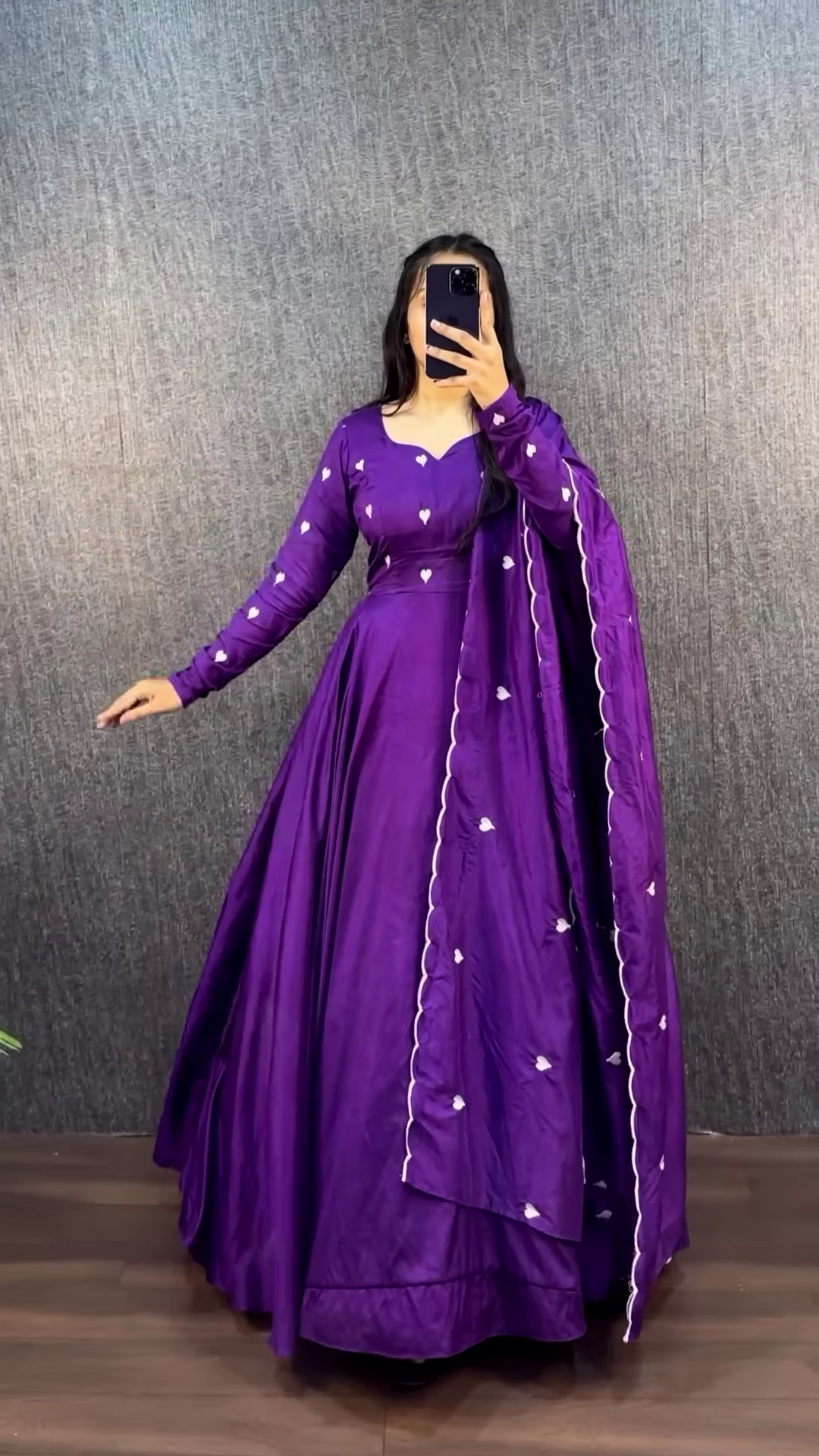 Command attention with this Royal Purple Anarkali Gown, a breathtaking ensemble that effortlessly merges traditional grace with youthful elegance. This full-length Anarkali set is a celebration of rich hues, intricate details, and timeless silhouettes—crafted for those special occasions where you want to feel both regal and radiant.